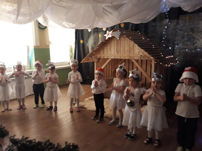 Najpierw dzieci zaprezentowały przygotowany program zimowo-świąteczny, wspólnie zaśpiewali kolędę, a następnie wraz z rodzicami wykonały ozdoby choinkowe.